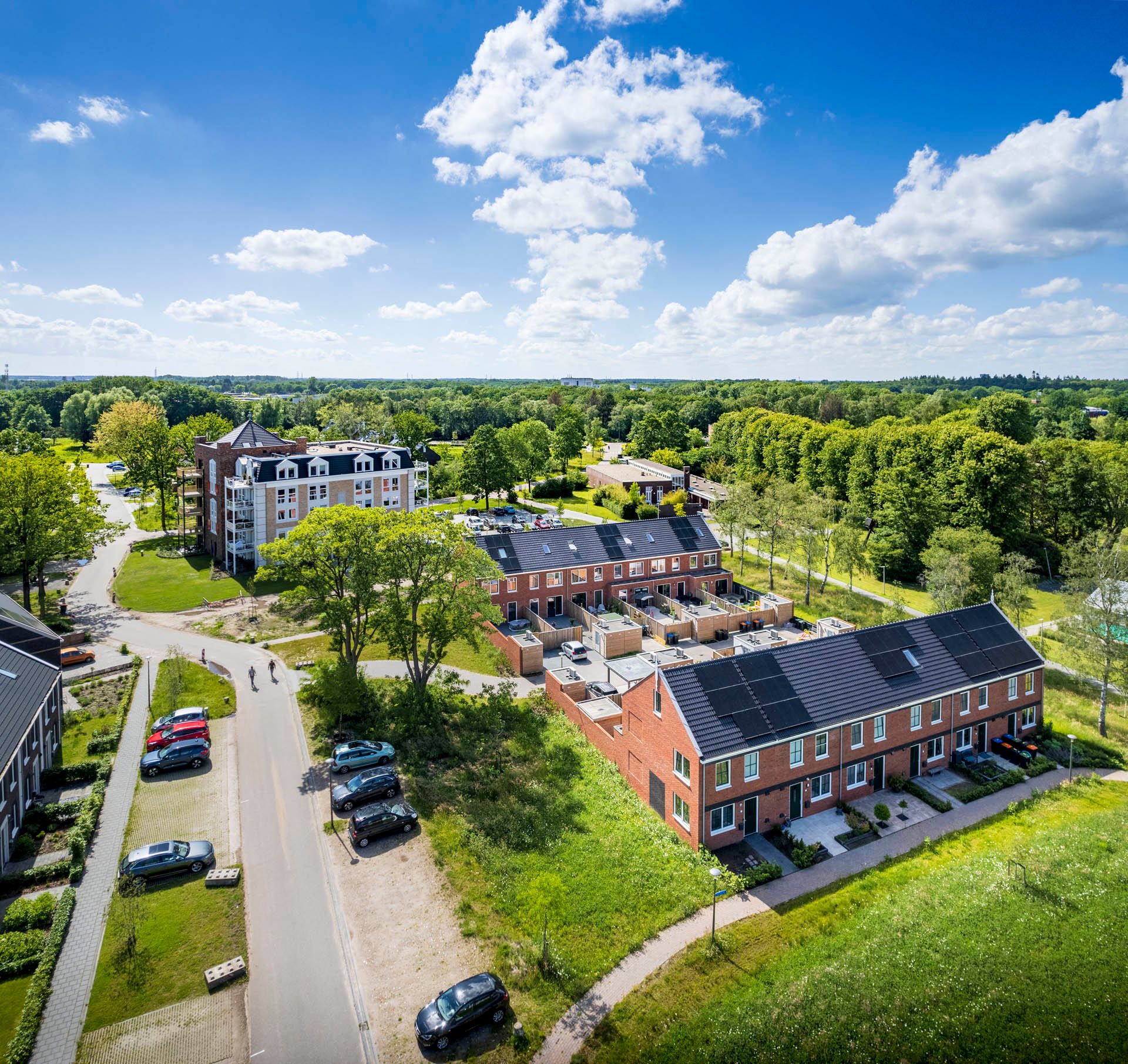 Aan De Hoeven in Assen heeft Fijn Wonen 22 rijwoningen gerealiseerd. De huizen zijn gasloos, duurzaam en helemaal klaar voor de toekomst. De bewoners kunnen hier genieten van de ruimte en de groene omgeving waar kinderen zorgeloos kunnen spelen. Ondertussen ligt het stadshart van Assen op slechts een kwartiertje afstand.
